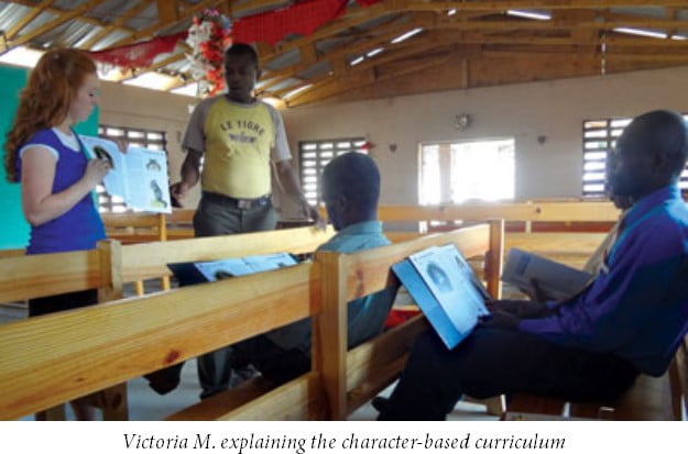 hout that week! The first day was a little dry, and it seemed that the teachers were only mildly interested. As we were preparing our lesson plan that evening, we prayed that God would give us wisdom and place a vision in each teacher’s heart to apply the training they were receiving. Through the next few days it was amazing to watch the transformation come over the teachers. They became excited about the lessons we were teaching, they saw the benefits that it would have on their students, and by the end of the week they couldn’t wait to get started incorporating character in their classroom! It was such an incredible answer to prayer!